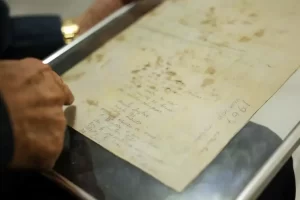 O músico Onildo Almeida mostra letra da música A Hora do Adeus, escrita em 1967 Foto: Tomaz Silva/Agência Brasil